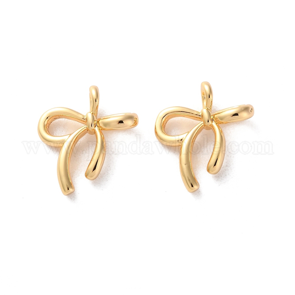 • Настоящее золото 18K Латунные подвески, бантом прелести, реальный 18 k позолоченный, 14x13x5 мм, отверстие : 2x1 мм