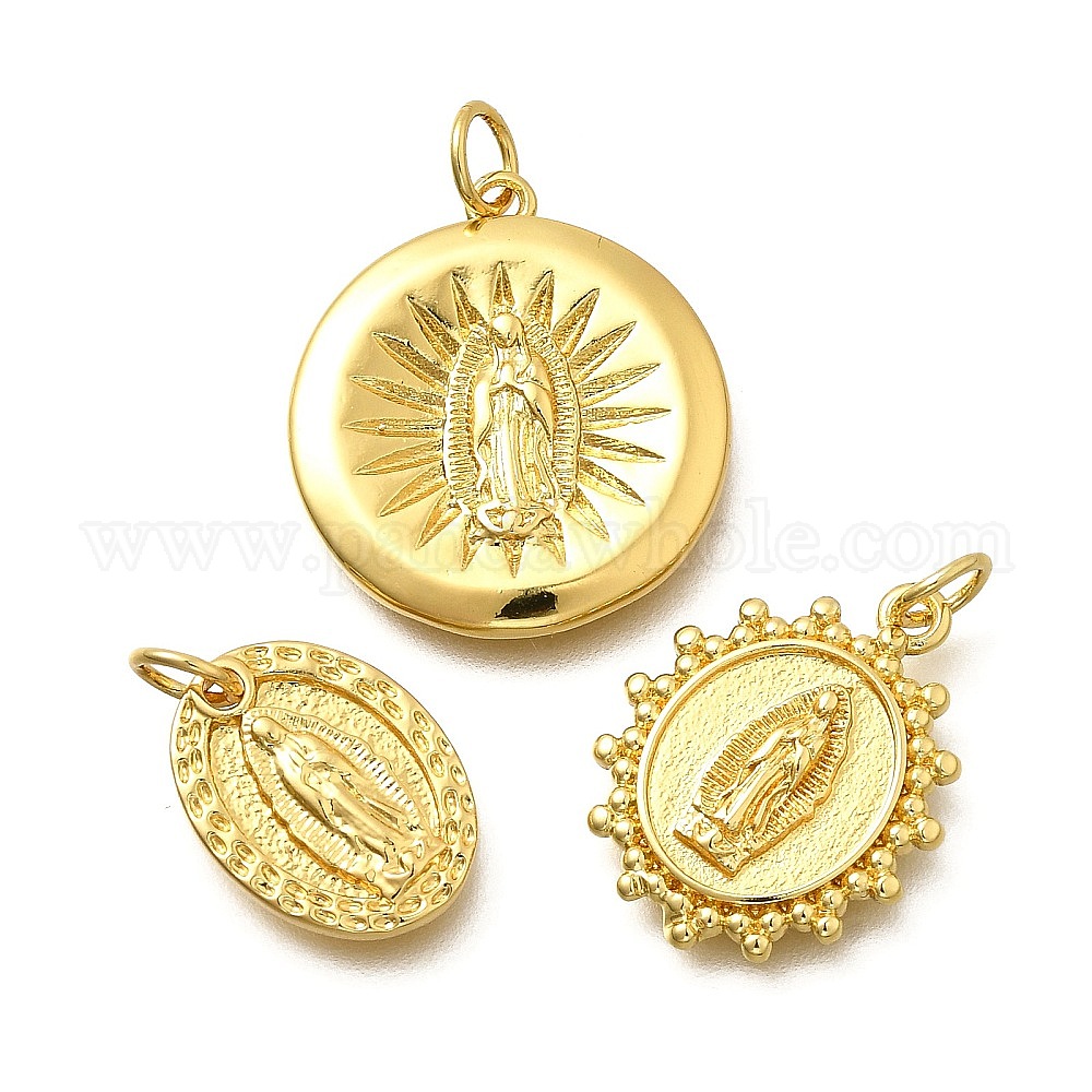 • Oval Латунные подвески Девы Марии, с целью перехода в кольце, без кадмия и без свинца, долговечный, реальный 18 k позолоченный, стойки покрытие, овальные, 19x15x2.5 мм, отверстие : 3.5 мм
