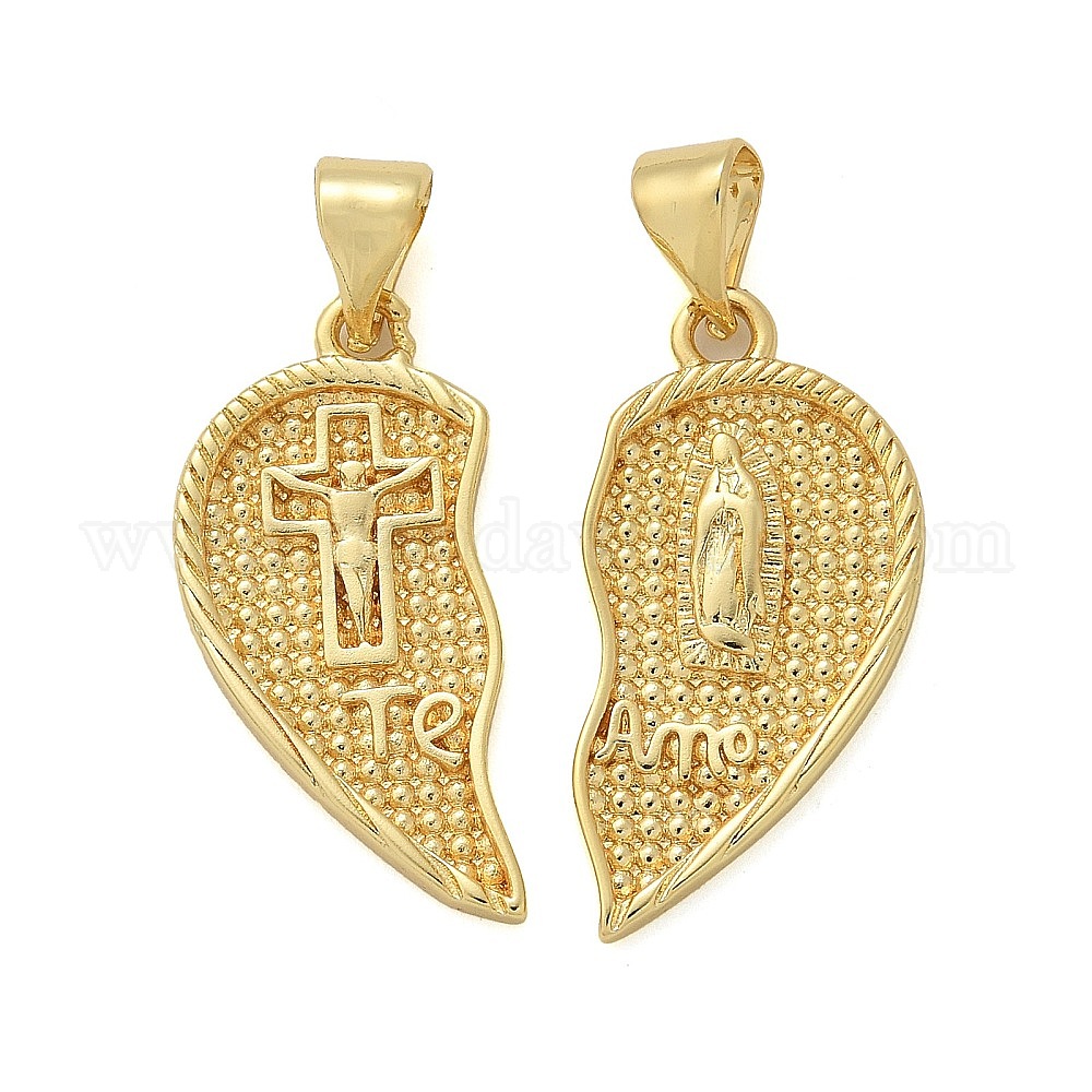 Латунные микро проложить кубического циркония подвески, сердце с соками девы марии и словом долговечное покрытие, без свинца и без кадмия