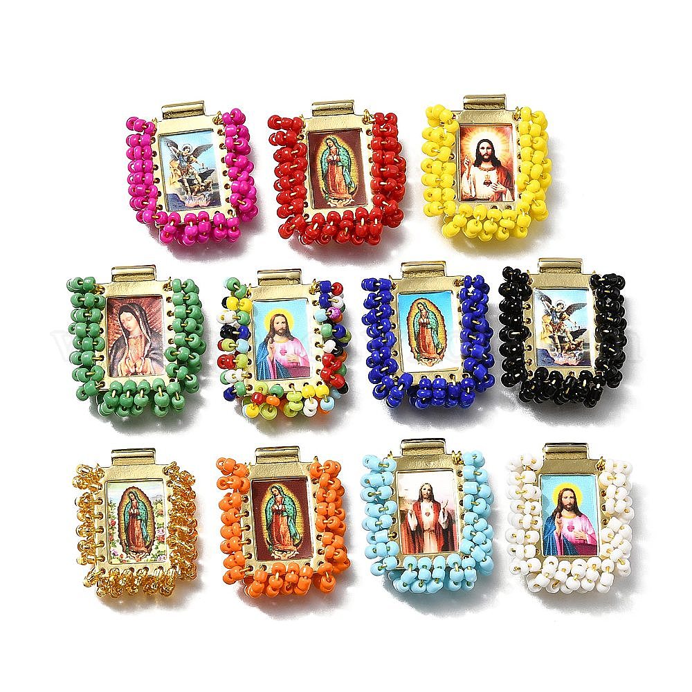 Подвески барс, с пластиковыми бусинами и бумагой, прямоугольник с фантастическими святыми, без кадмия, без никеля и без свинца