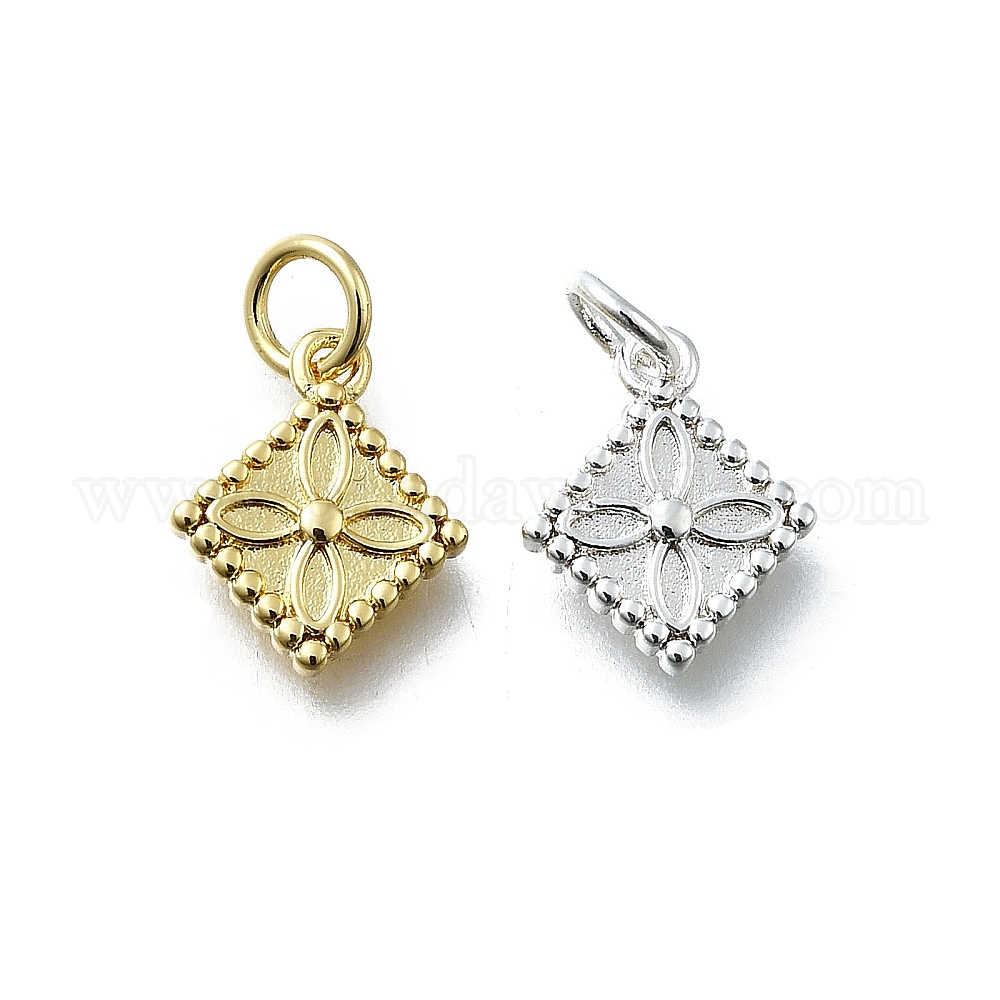 Латунные подвески, ромб с цветочными подвесками, долговечный, без свинца и без кадмия, стойки покрытие, с целью перехода в кольце