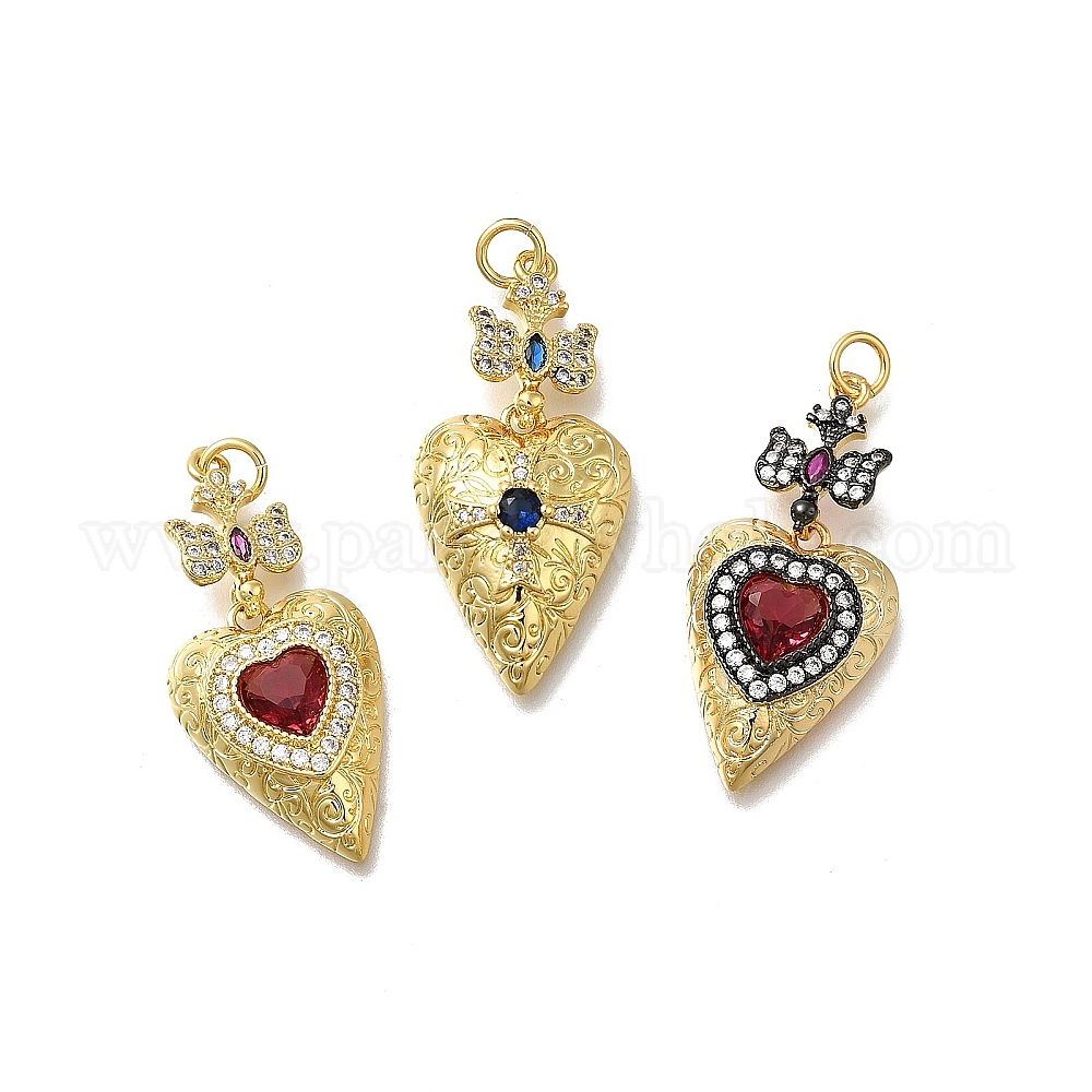 Подвески латунные горный хрусталь, сердце, с прыгающим кольцом, без свинца и без кадмия, золотые