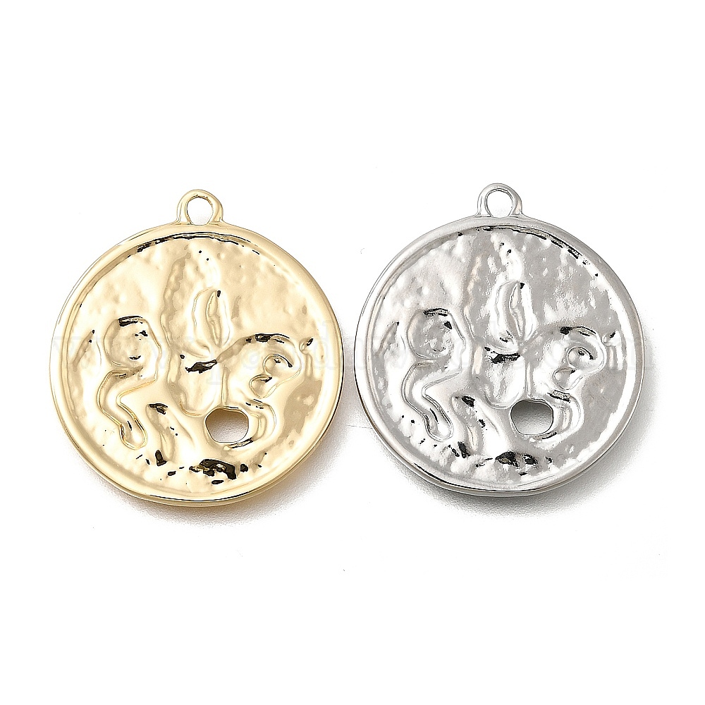 Латунные подвески, плоский круг с подвесками в виде единорога