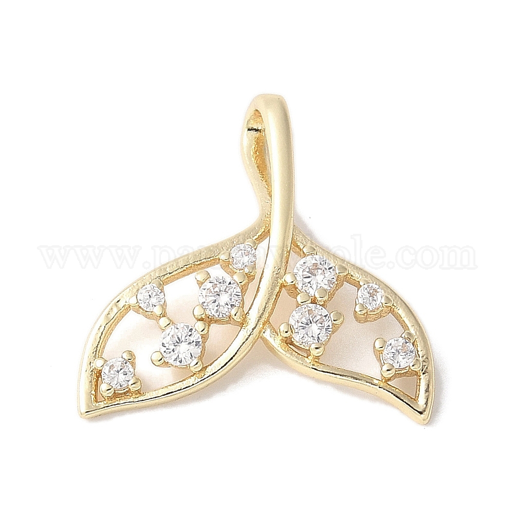 Подвески из латуни с полым резным дизайном в форме рыбьего хвоста, со стразами, настоящее 14k золотое и долговечное покрытие