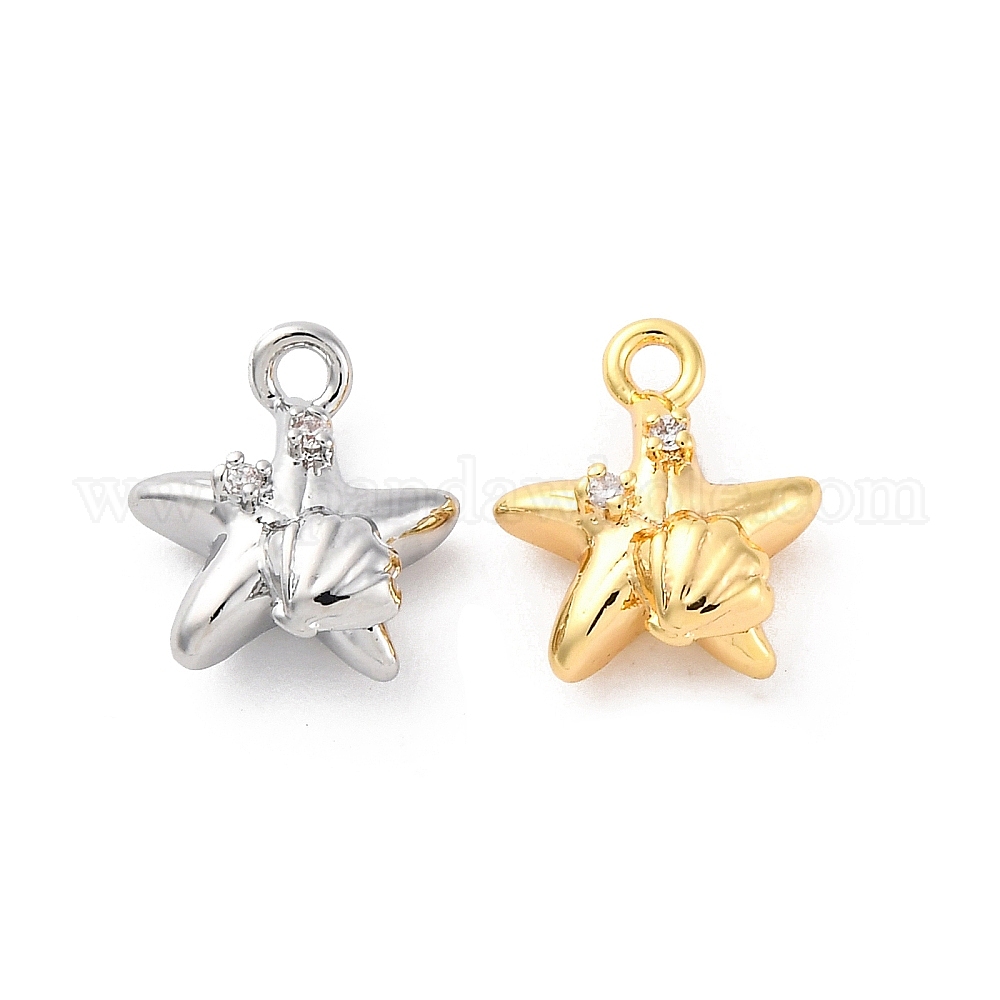 Подвески латунные горный хрусталь, без кадмия, без никеля и без свинца, подвески в виде морской звезды с ракушкой