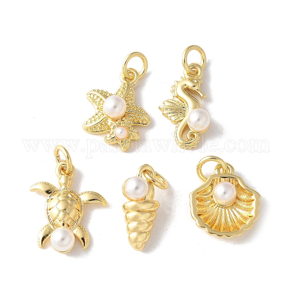 Латунные подвески, океанские темы, с искусственным жемчугом, долговечный, без кадмия и без свинца, стойки покрытие, реальный 18 k позолоченный, с целью перехода в кольце (032D4Y)