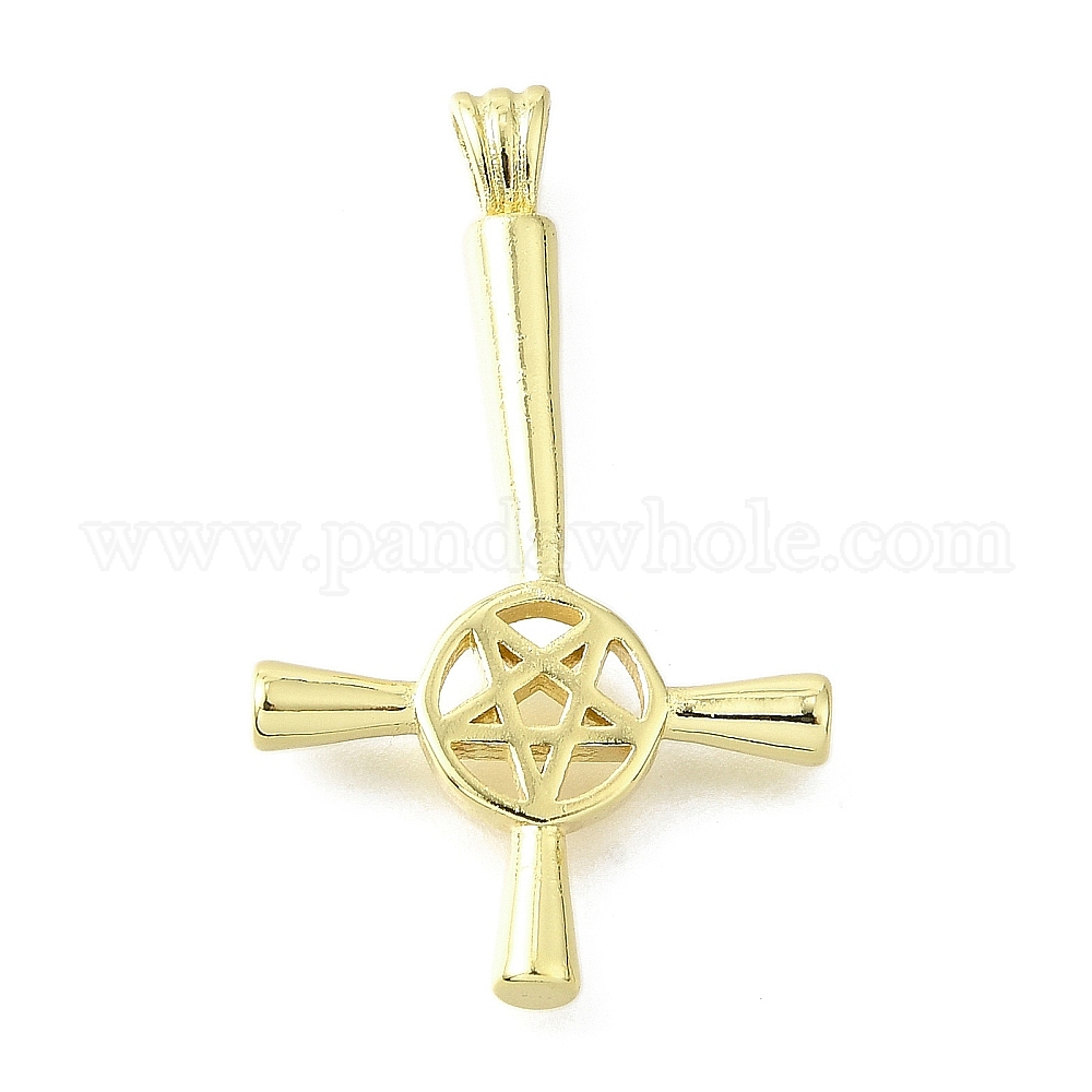 Латунные подвески, христианский перевернутый крест со звездой, долговечный, без свинца и без кадмия, стойки покрытие (032EM7)