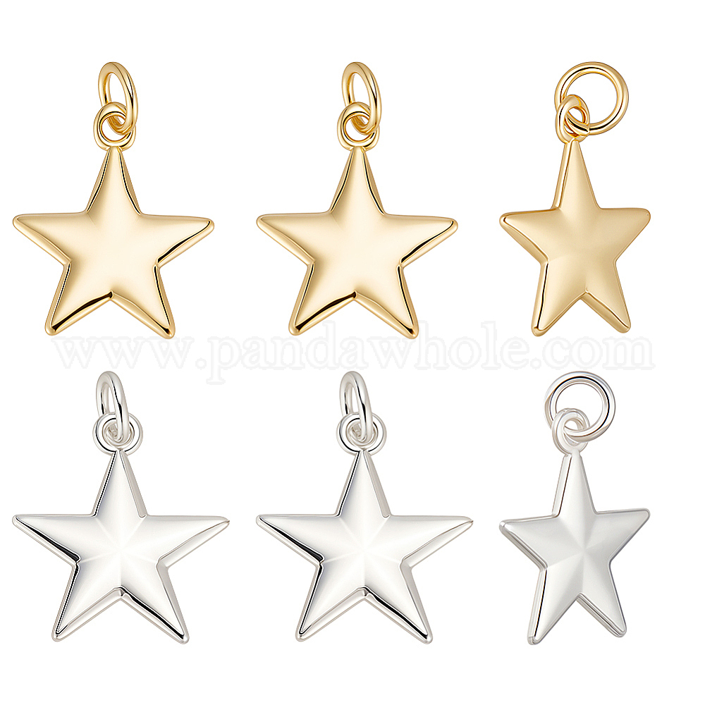 12 шт. 2 цвета латунные подвески, с прыжковых колец, долговечный, звезда