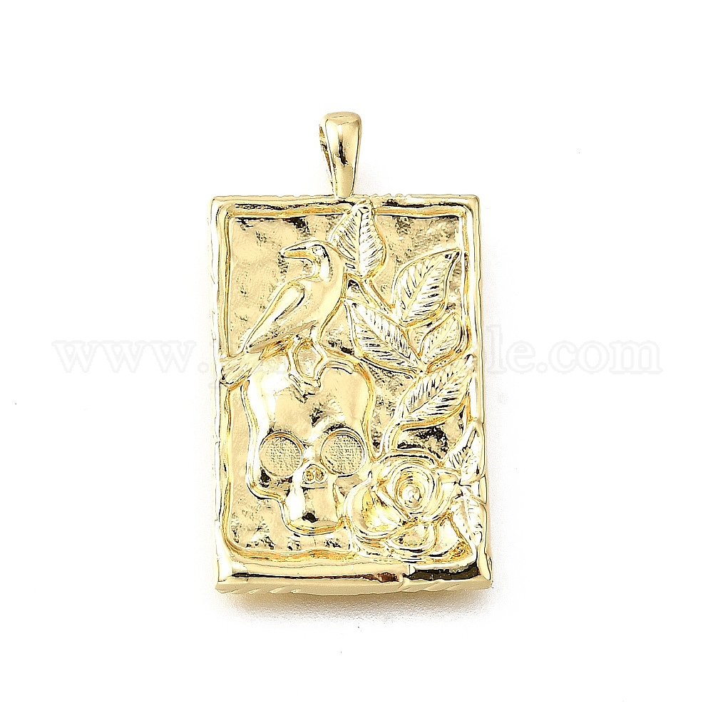 Латунные подвески, прямоугольник с подвесками в виде черепа и цветка, без свинца и без кадмия, стойки покрытие, долговечный