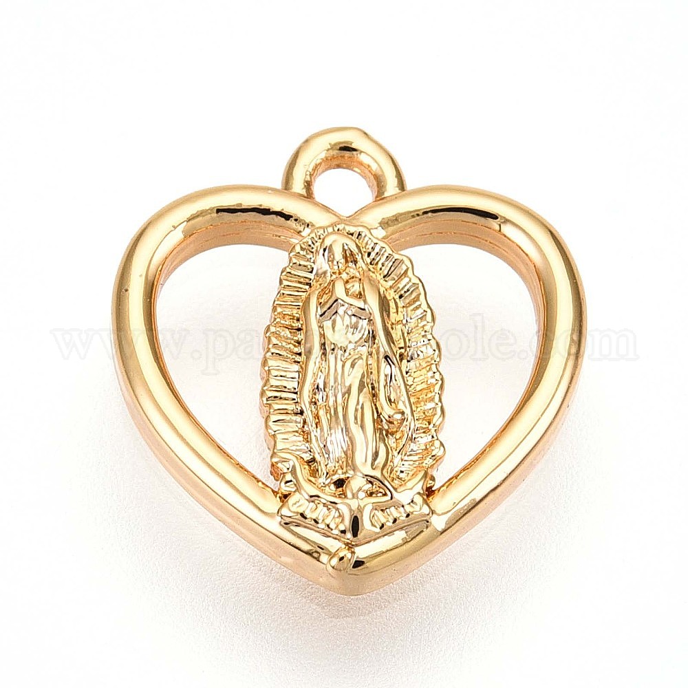 Латунные подвески, Сердце с Девой Марией, без кадмия, без никеля и без свинца