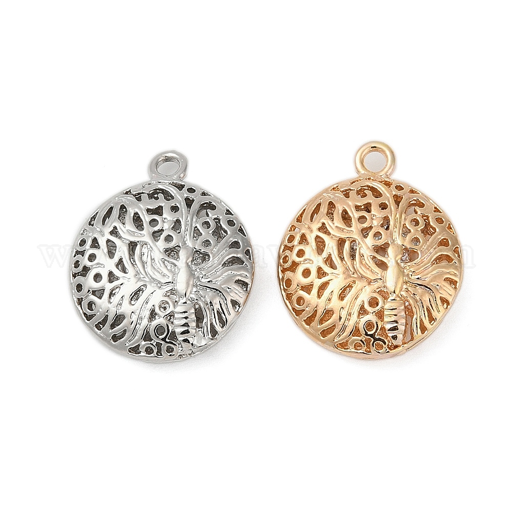 Латунные подвески, без кадмия, без никеля и без свинца, плоские круглые с деревом
