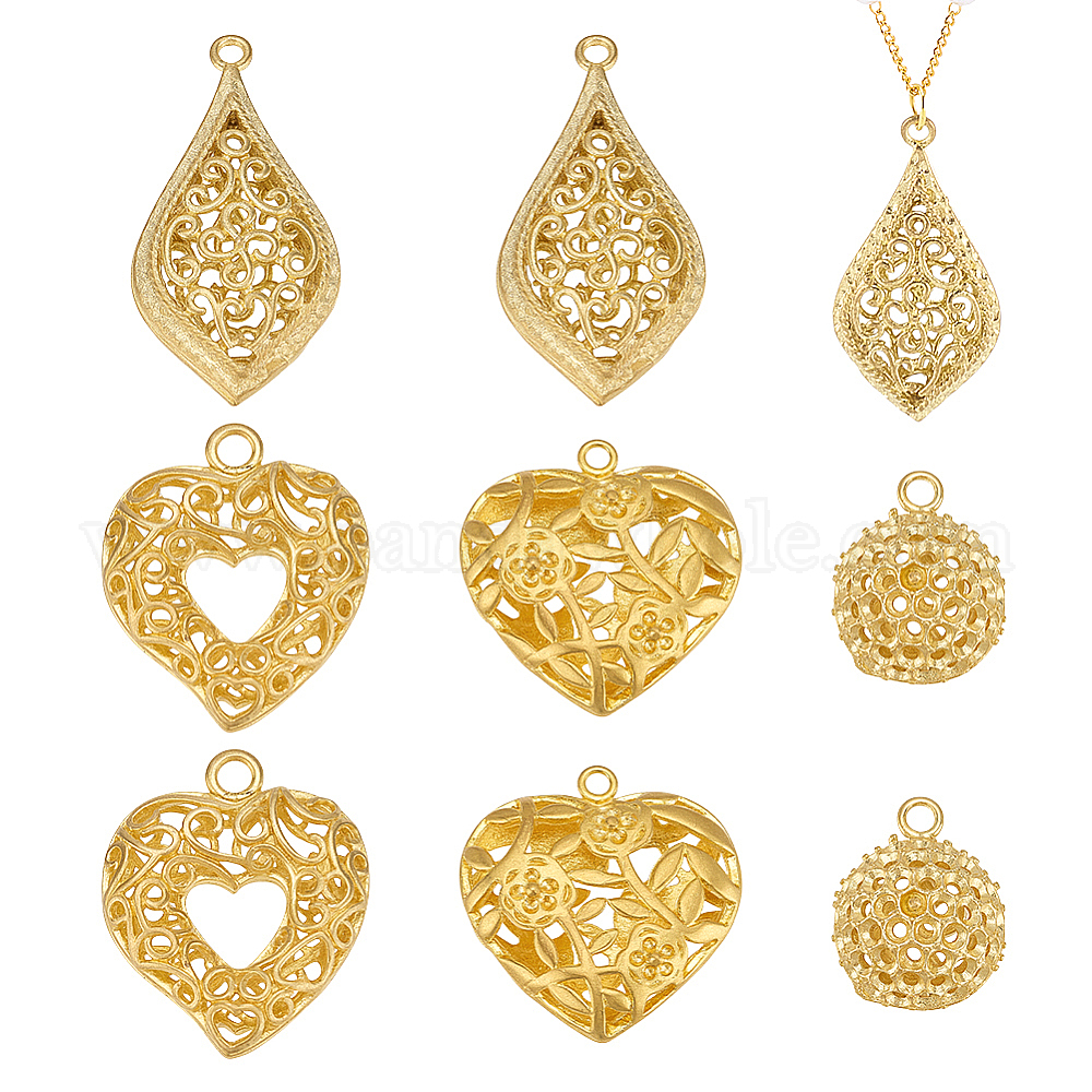 8 шт. 4 стили латунные полые подвески, разнообразные
