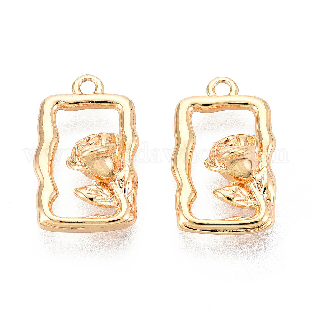 • Настоящее золото 18K Латунные подвески, без кадмия, без никеля и без свинца, прямоугольник и цветок, реальный 18 k позолоченный, 15.5x9.5x5 мм, отверстие : 1.2 мм