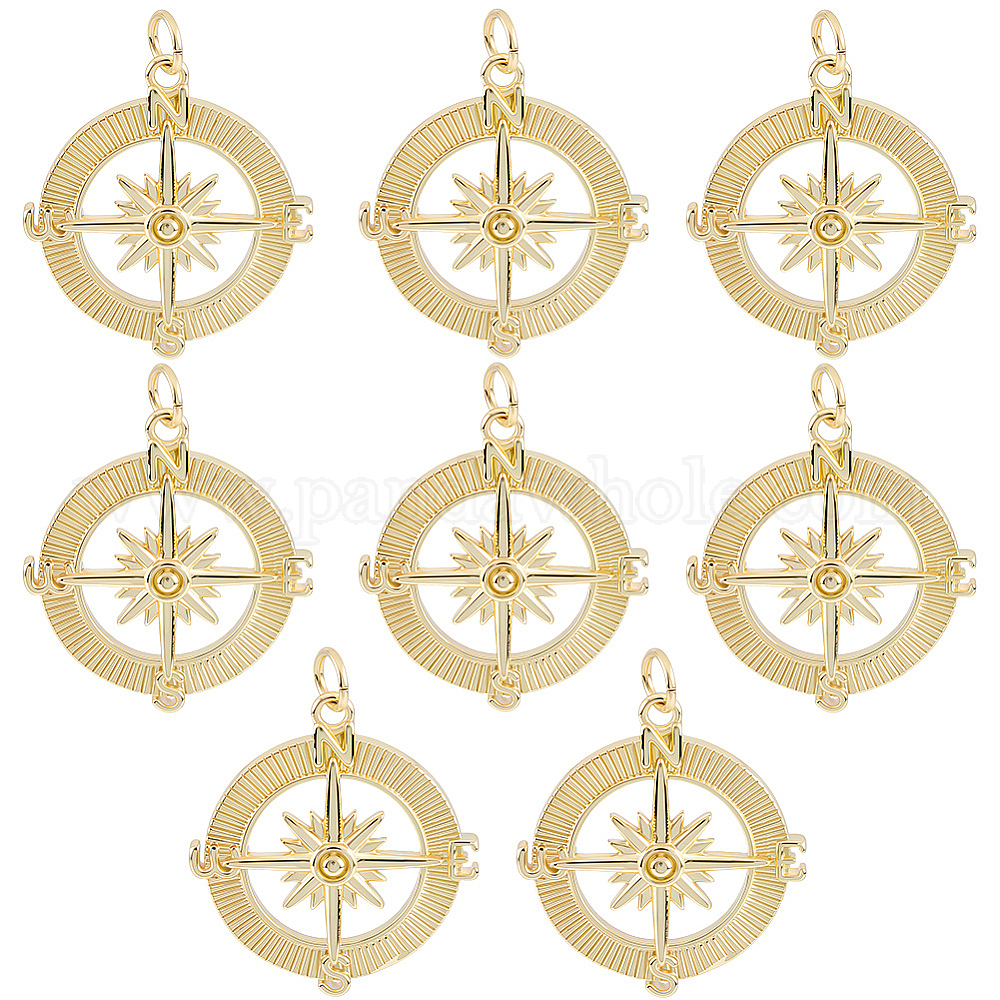 8 латунные подвески шт., с прыжковых колец, компас (036CGX)