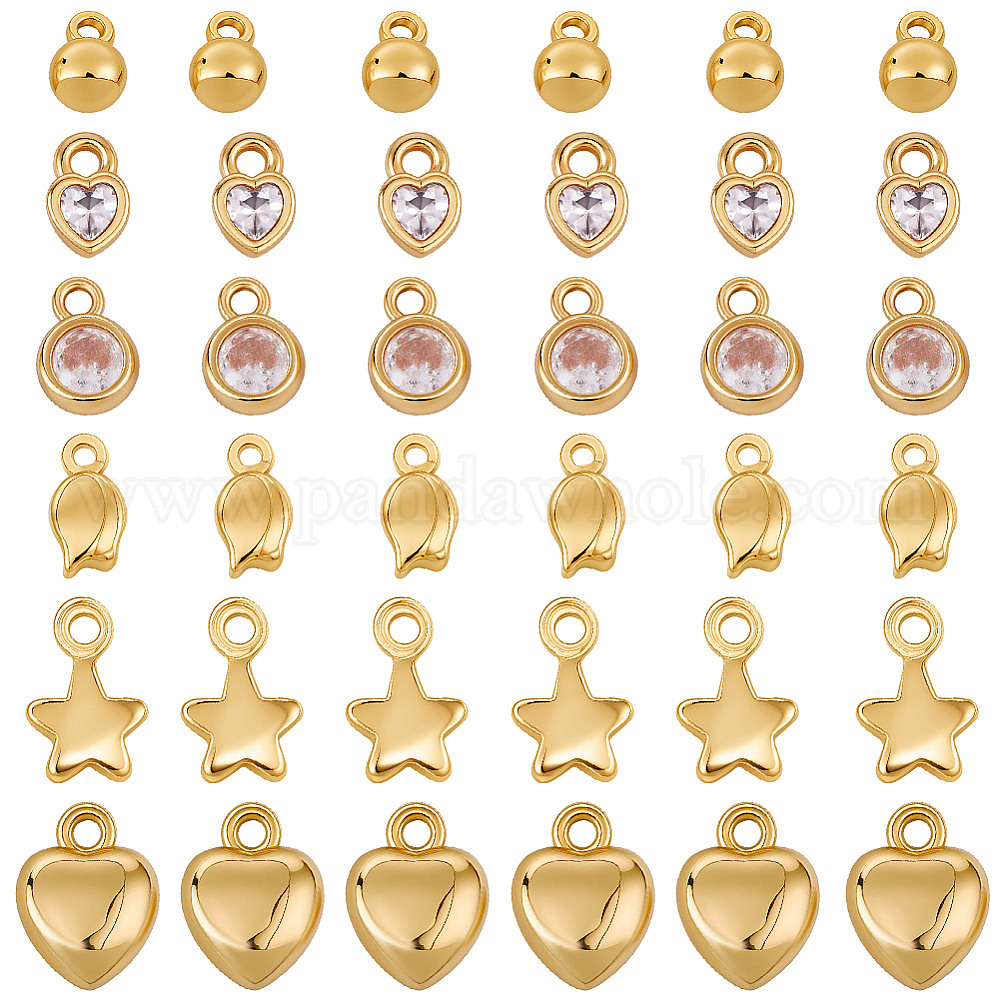 • Настоящее золото 18K 48 шт 6 стили латунные подвески, реальный 18 k позолоченный, 5.5~9.5x4~8x2~4 мм, отверстие : 1~1.4 мм, 8 шт / стиль