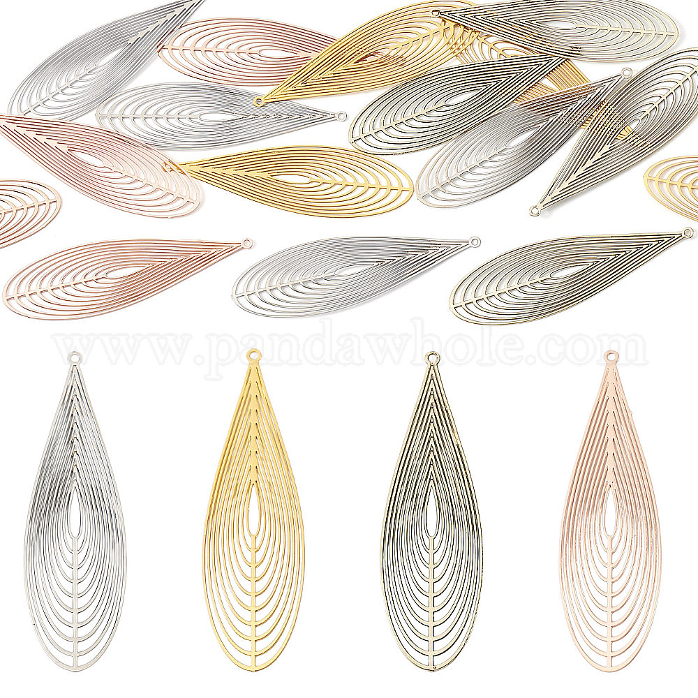 16шт 4цвета латунные филигранные подвески, гравированные металлические украшения, слеза