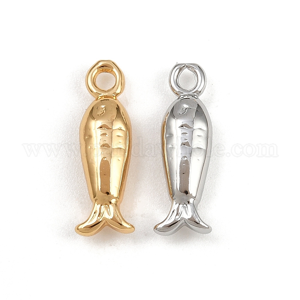 • Настоящее золото 18K Латунные подвески, рыбы прелести, реальный 18 k позолоченный, 15x4.5x3.5 мм, отверстие : 1.6 мм