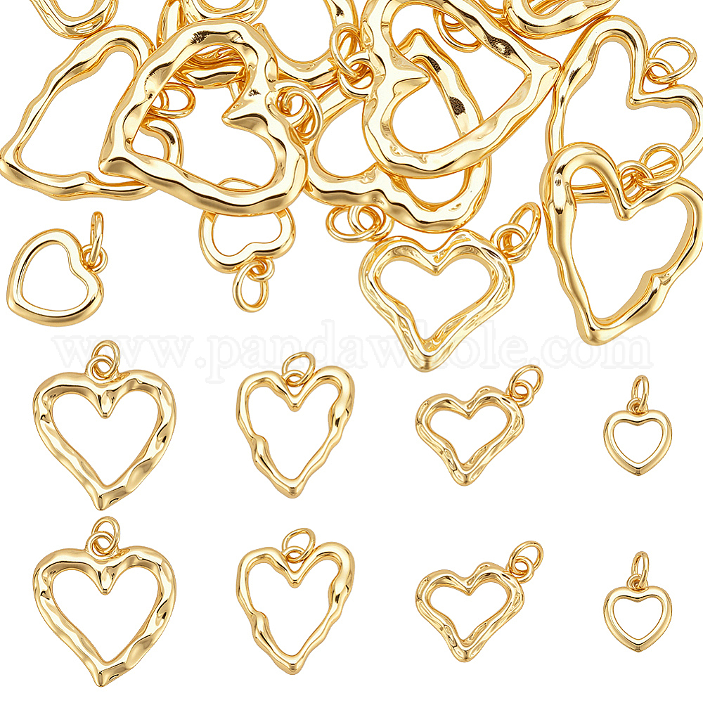 16 шт 4 стили латунные подвески, сердце прелести, с целью перехода в кольце