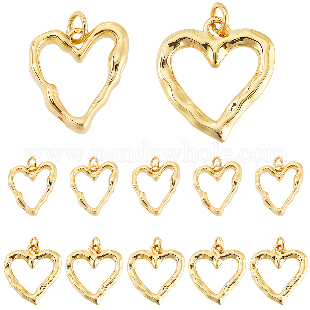 12шт 2 стили латунные подвески с покрытием стойки, без свинца и без кадмия, долговечный, сердце прелести, с целью перехода в кольце