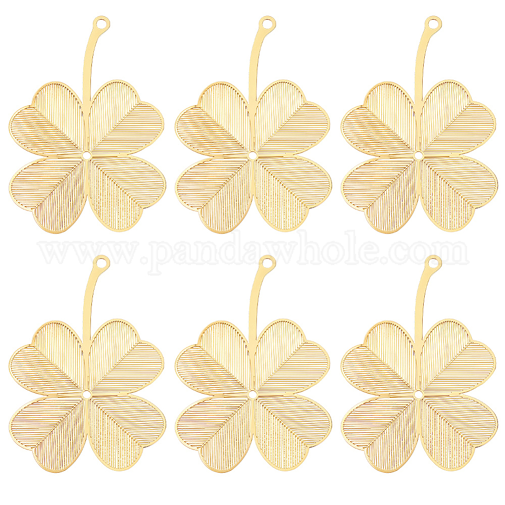 10 шт латунные большие подвески, Четыре листа клевера, гравированные металлические украшения, долговечный, без никеля