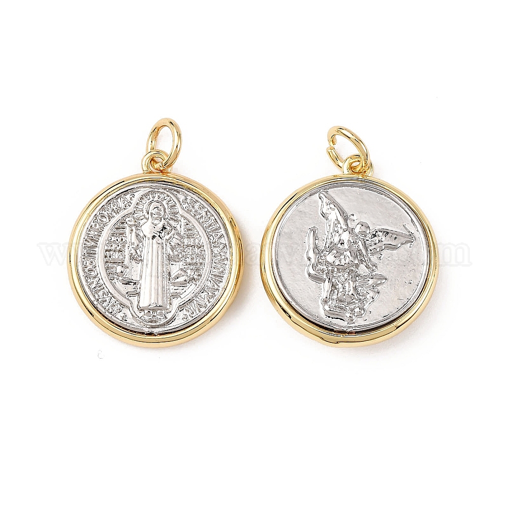 Латунные подвески, плоский круг со святым Михаилом/святым Бенедиктом, стойки покрытие, долговечный, без свинца и без кадмия, с целью перехода в кольце