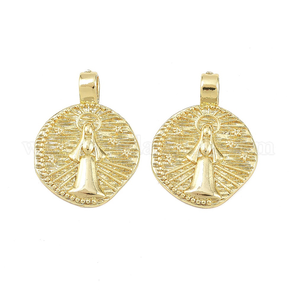 Латунные подвески, плоские круглые с Девой Марией, долговечный, стойки покрытие