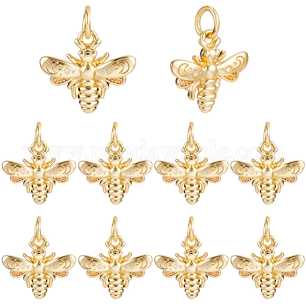 • Настоящее золото 18K 10шт. стойка с покрытием из латуни, подвески в виде пчел, с целью перехода в кольце, долговечный, без кадмия и без свинца, реальный 18 k позолоченный, 13x14.5x2.5 мм, отверстие : 3 мм