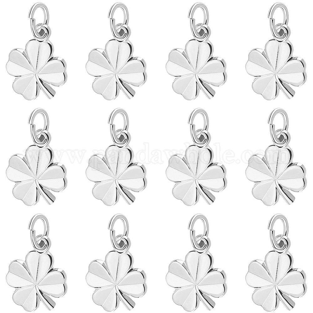 • Посеребрённый 40 шт. Латунные подвески, клевер, без кадмия и без никеля, с целью перехода в кольце, 925 серебро покрытием, 11x9x1 мм, отверстие : 3 мм