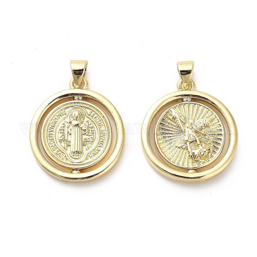 • Золотой Латунные подвески, раунд со святым Михаилом, золотые, 23x20x3~4 мм, отверстие : 3.5x4.5 мм