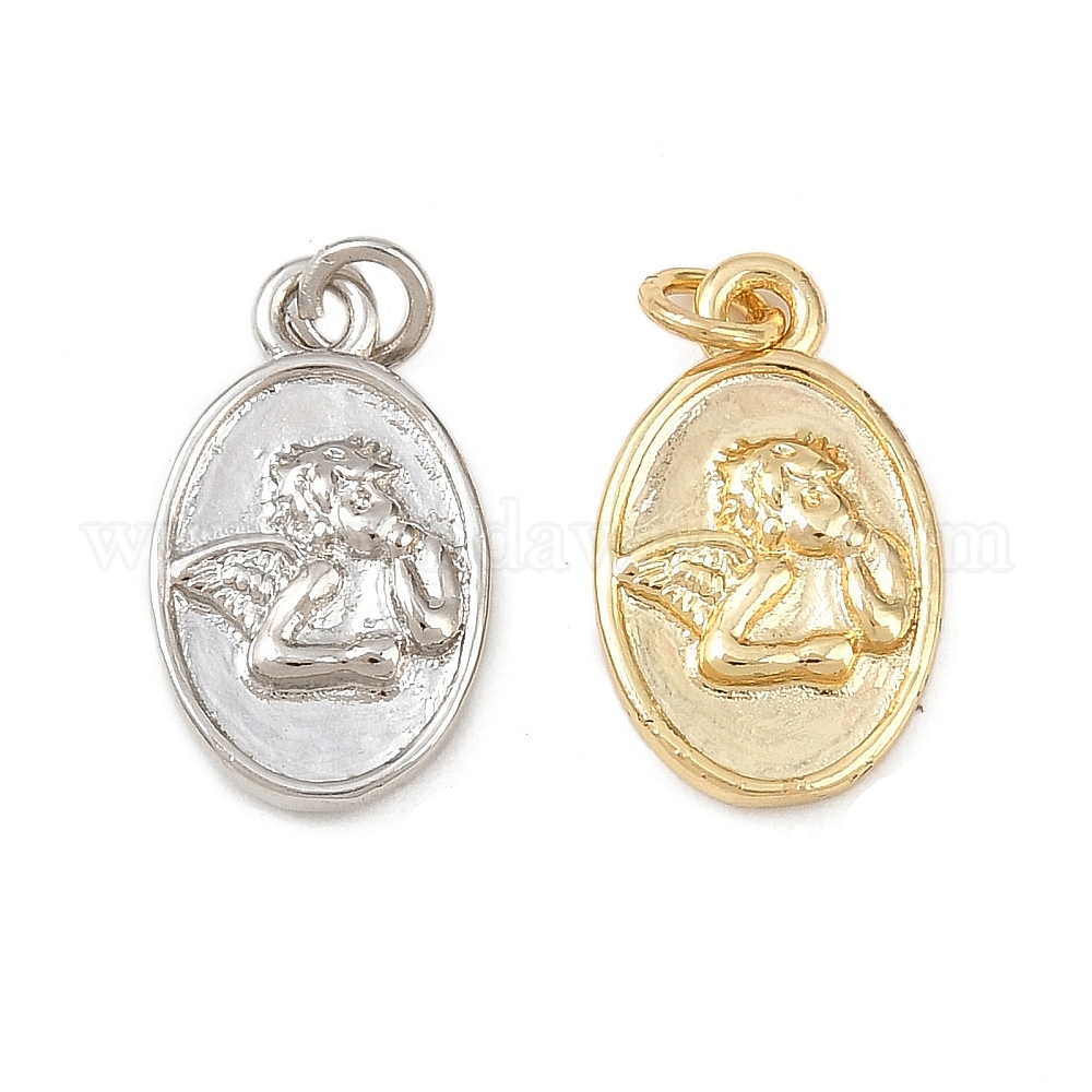 Латунные подвески, овальные с ангелом, долговечный, без свинца и без кадмия, стойки покрытие, с целью перехода в кольце