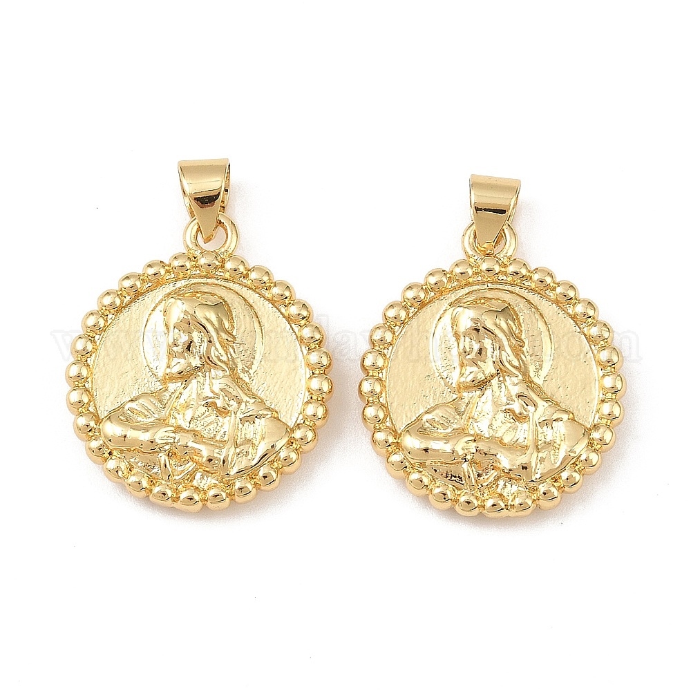 Латунные подвески, плоские круглые и подвески с изображением Иисуса Христа, стойки покрытие, долговечный, без кадмия и без свинца (037YSQ)