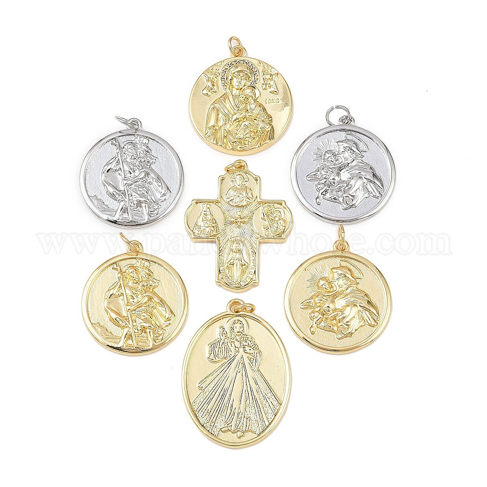 • Настоящее золото 18K Латунные подвески, леди вечной помощи, без кадмия и без свинца, стойки покрытие, долговечный, с целью перехода в кольце, реальный 18 k позолоченный, 28x25x3.5 мм, отверстие : 3 мм