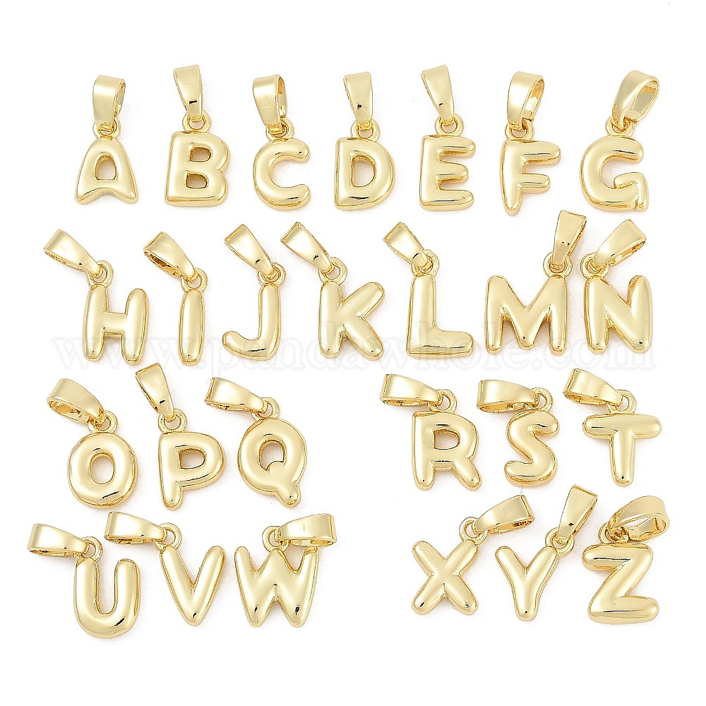 26 шт. Латунные подвески, Письмо ~ Z, без кадмия и без свинца, долговечный, стойки покрытие