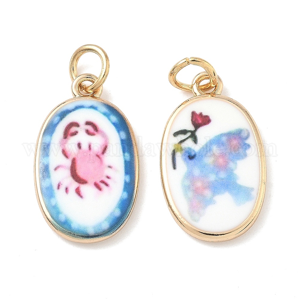 Латунные подвески с принтом, овальные амулеты, с целью перехода в кольце, золотые