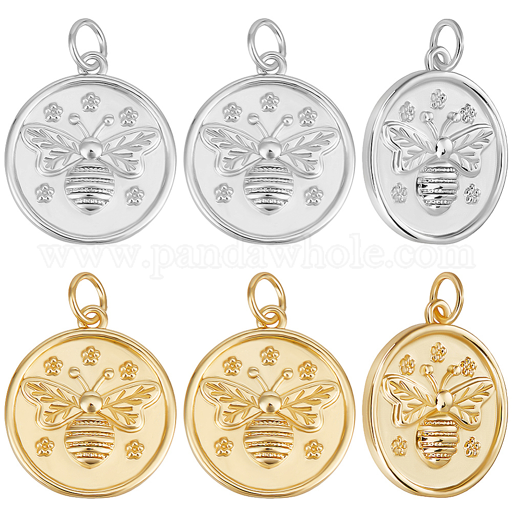10 шт. 2 цвета стойки, латунные подвески, долговечный, без свинца и без кадмия, плоский круг с подвесками в виде пчелы, с целью перехода в кольце