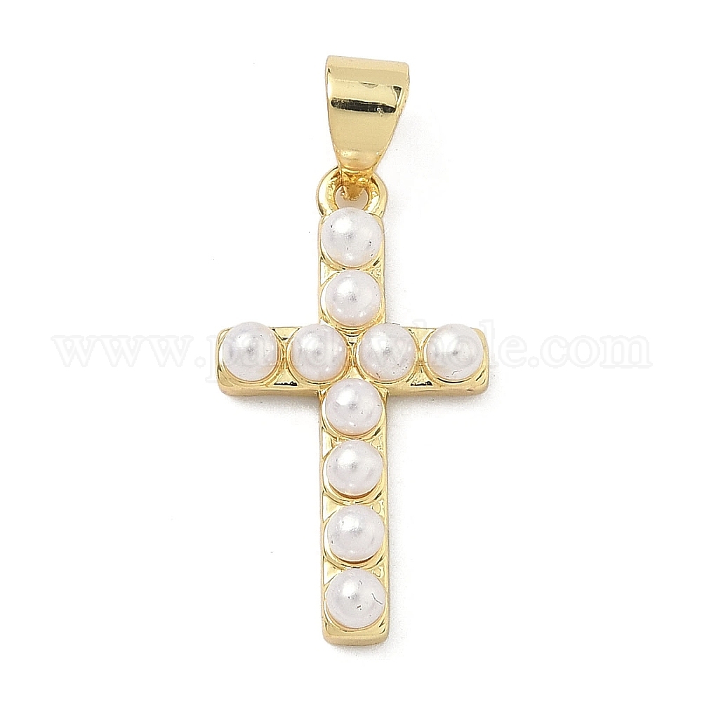 Подвески из латуни и АБС-пластика с имитацией жемчуга, крест прелести