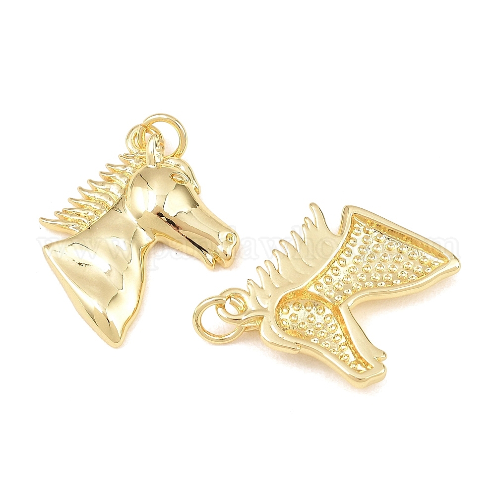 • Настоящее золото 18K Латунные подвески, долговечные подвески в виде лошадей с покрытием, стойки покрытие, без свинца и без кадмия, реальный 18 k позолоченный, 17x17.5x4 мм, Перейти кольцо: 5x1 мм, внутренний диаметр: 3 мм