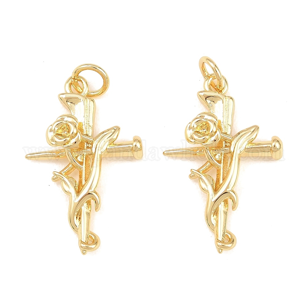 Латунные подвески, Подвески в виде креста и розы, долговечные, с покрытием., стойки покрытие, без свинца и без кадмия