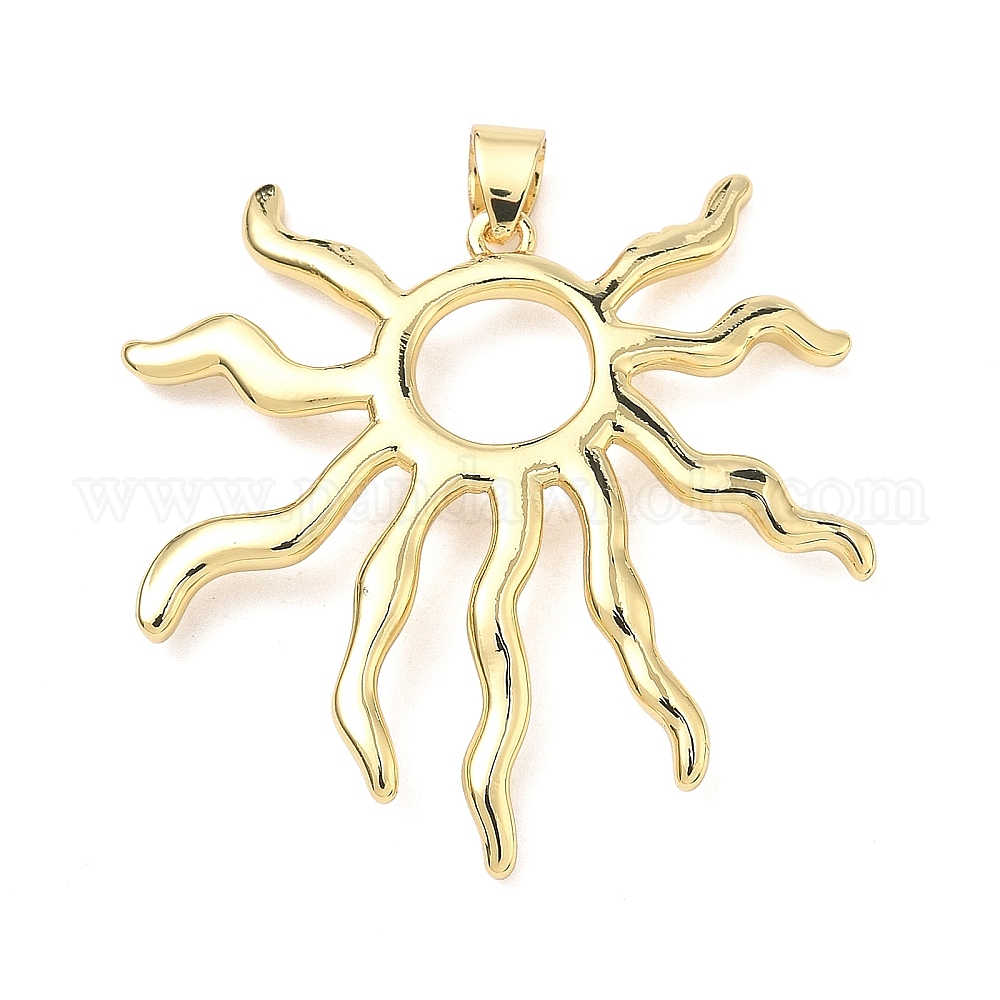 • Настоящее золото 18K Латунные подвески, солнечные очарования долговечное покрытие, стойки покрытие, без свинца и без кадмия, реальный 18 k позолоченный, 41x39x2.5 мм, отверстие : 5x4 мм