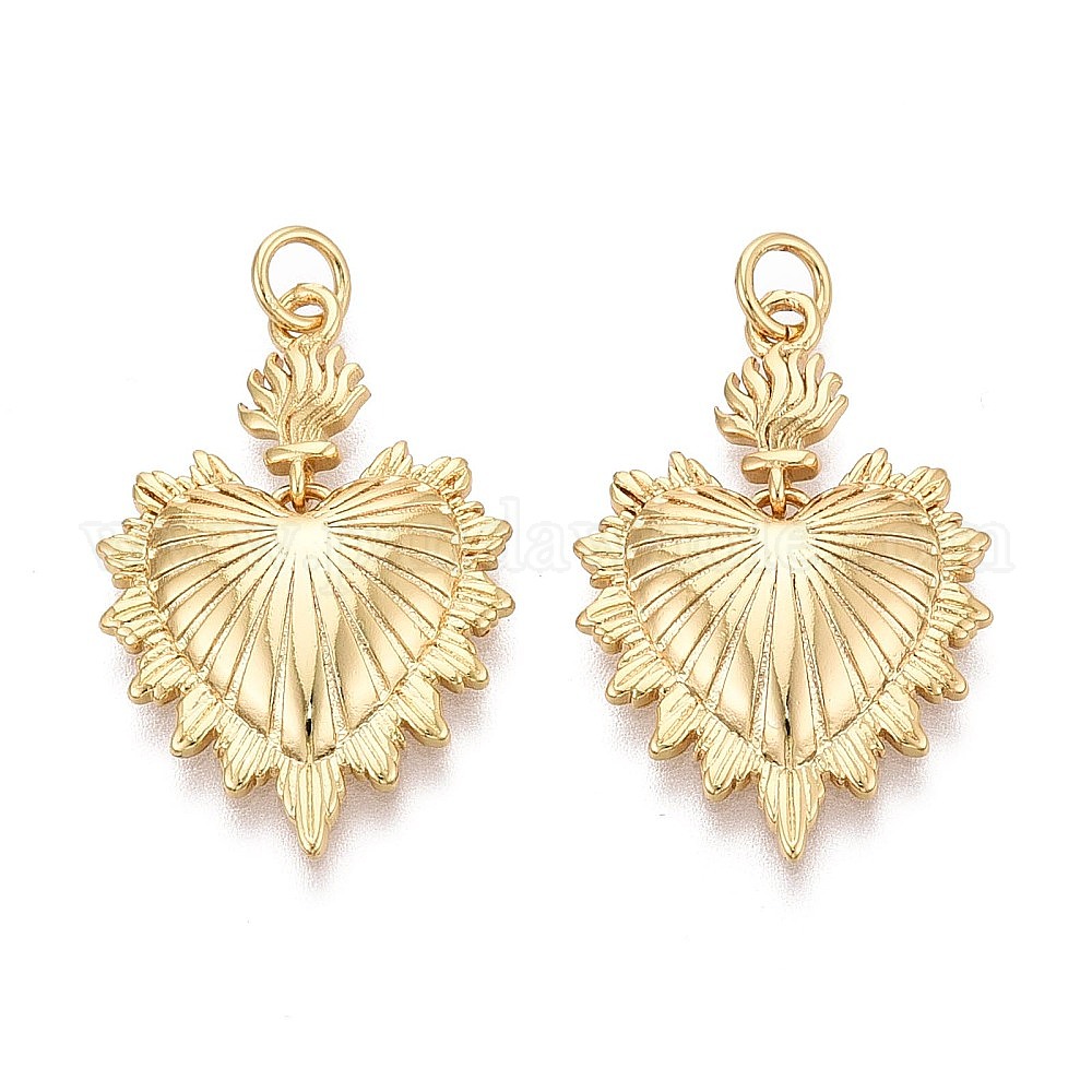 • Настоящее золото 16K Текстурированные латунные подвески, чары священного сердца, реальный 16 k позолоченный, 28x18.5x3.5 мм, отверстие : 3 мм, Перейти кольцо: 5x0.8 мм, внутренний диаметр: 3 мм