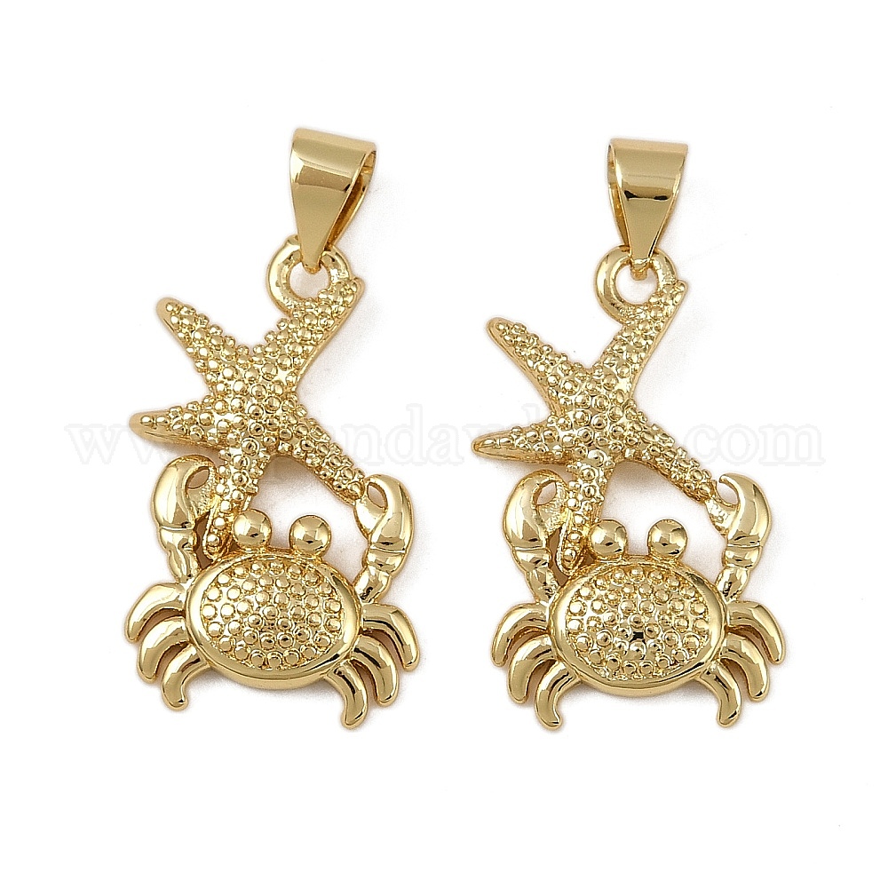 • Краб Латунные подвески, долговечный, без кадмия и без свинца, стойки покрытие, реальный 18 k позолоченный, краб, 21.5x14.5x2.5 мм, отверстие : 4.5x3.5 мм