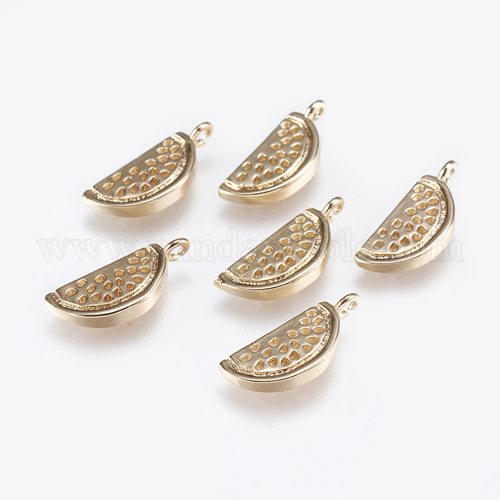 • Настоящее золото 18K Латунные подвески, арбуз, реальный 18 k позолоченный, 15x6x2 мм, отверстие : 1.5 мм