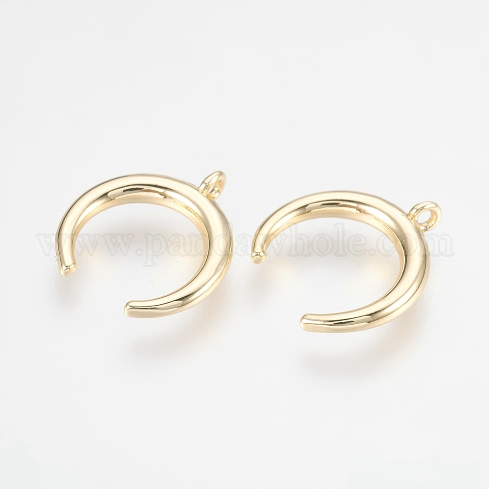 • Настоящее золото 18K Латунные подвески, без никеля , полумесяц / двойной рог, реальный 18 k позолоченный, 16x15x3 мм, отверстие : 1.2 мм