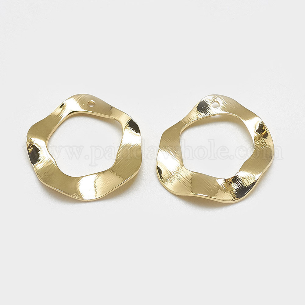 Латунные подвески, без кадмия, без никеля и без свинца, волнистыми кольцо, реальный 18 k позолоченный