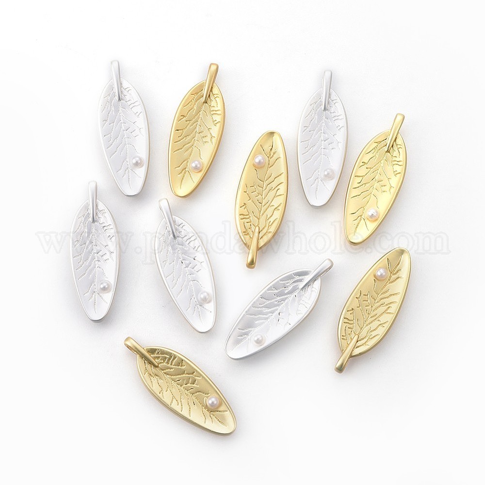 Латунные подвески, с акриловой жемчужные бусины, долговечный, лист