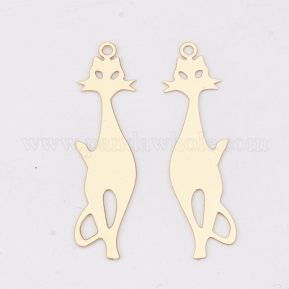 Кулоны с котятами из латуни, гравированные металлические украшения, долговечный, без кадмия, без никеля и без свинца, силуэт кота