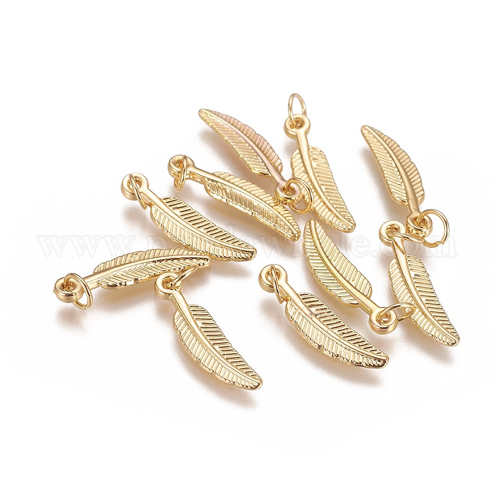 • Золотой Латунные подвески, долговечный, перо, золотые, 21.5x5x1.5 мм, отверстие : 4 мм