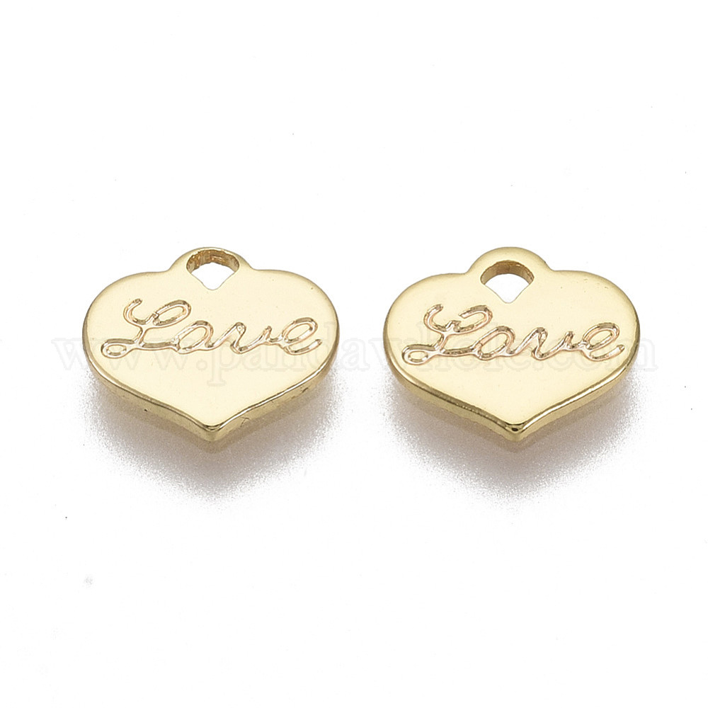 • Настоящее золото 18K Латунь прелести, сердце, без никеля , реальный 18 k позолоченный, 7x8x1 мм, отверстие : 1 мм