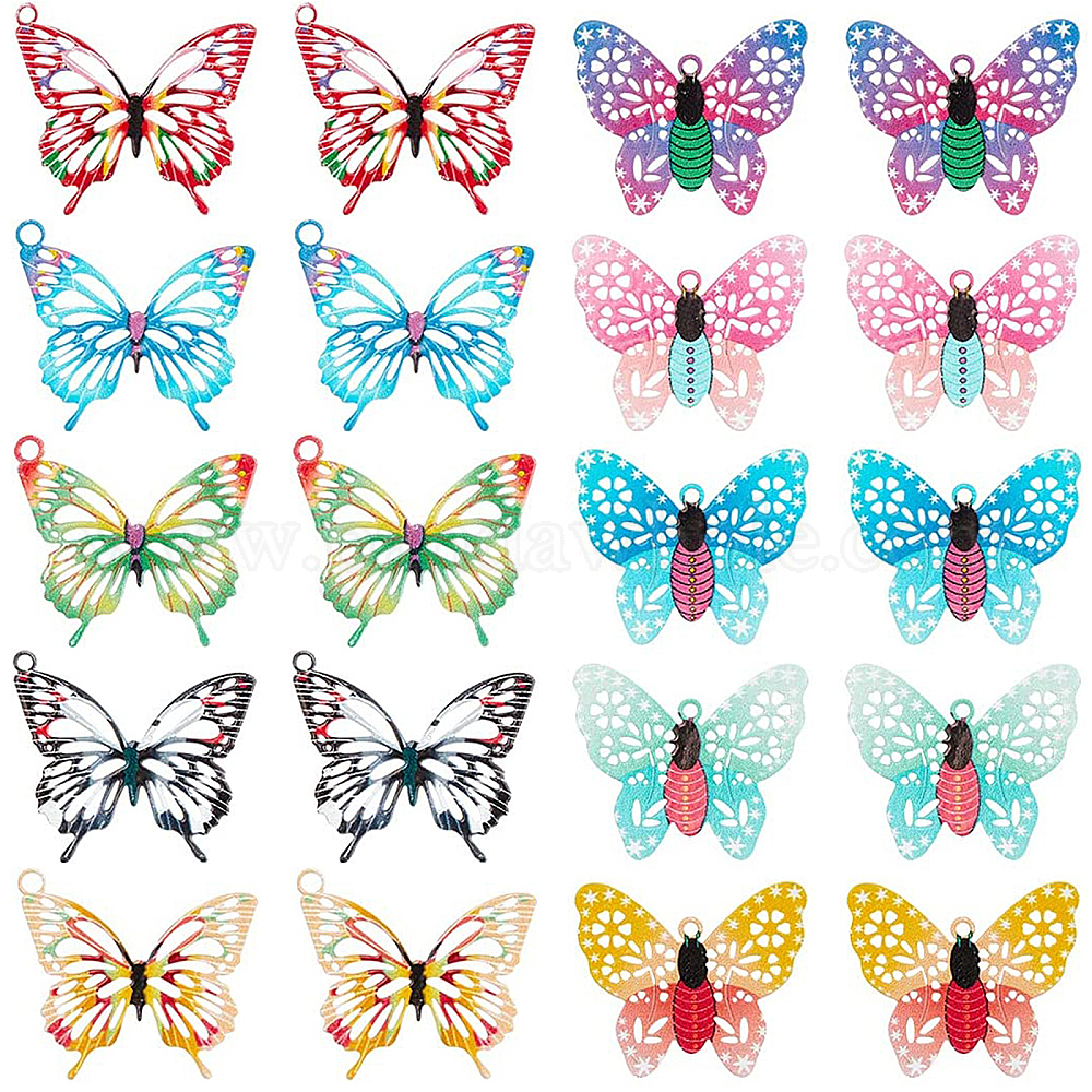 • (52) Непрозрачная лаванда Латунные подвески с принтом, гравированные металлические украшения, бабочка, разноцветные, 15.5~16.5x19x0.3 мм, отверстие : 1~1.5 мм, 40 шт / коробка
