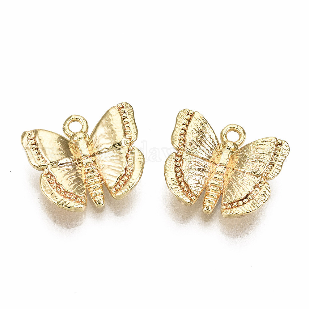 • Настоящее золото 18K Латунь прелести, без никеля , бабочка, реальный 18 k позолоченный, 10x11x3 мм, отверстие : 1.2 мм